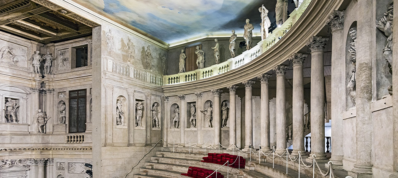 Das Theater hatte die Olympische Akademie von Vicenza gegen Ende der 1570er Jahre in Auftrag gegeben. Palladio war die naheliegende Wahl für die Entwürfe. Immerhin war er ein bekannter und ortsansässiger Architekt und einer der Gründer der Akademie. Als die Arbeiten an dem kunstvollen Bauwerk 1580 begannen, kamen sie fast sofort zu einem Stopp, weil Palladio überraschend verstarb.