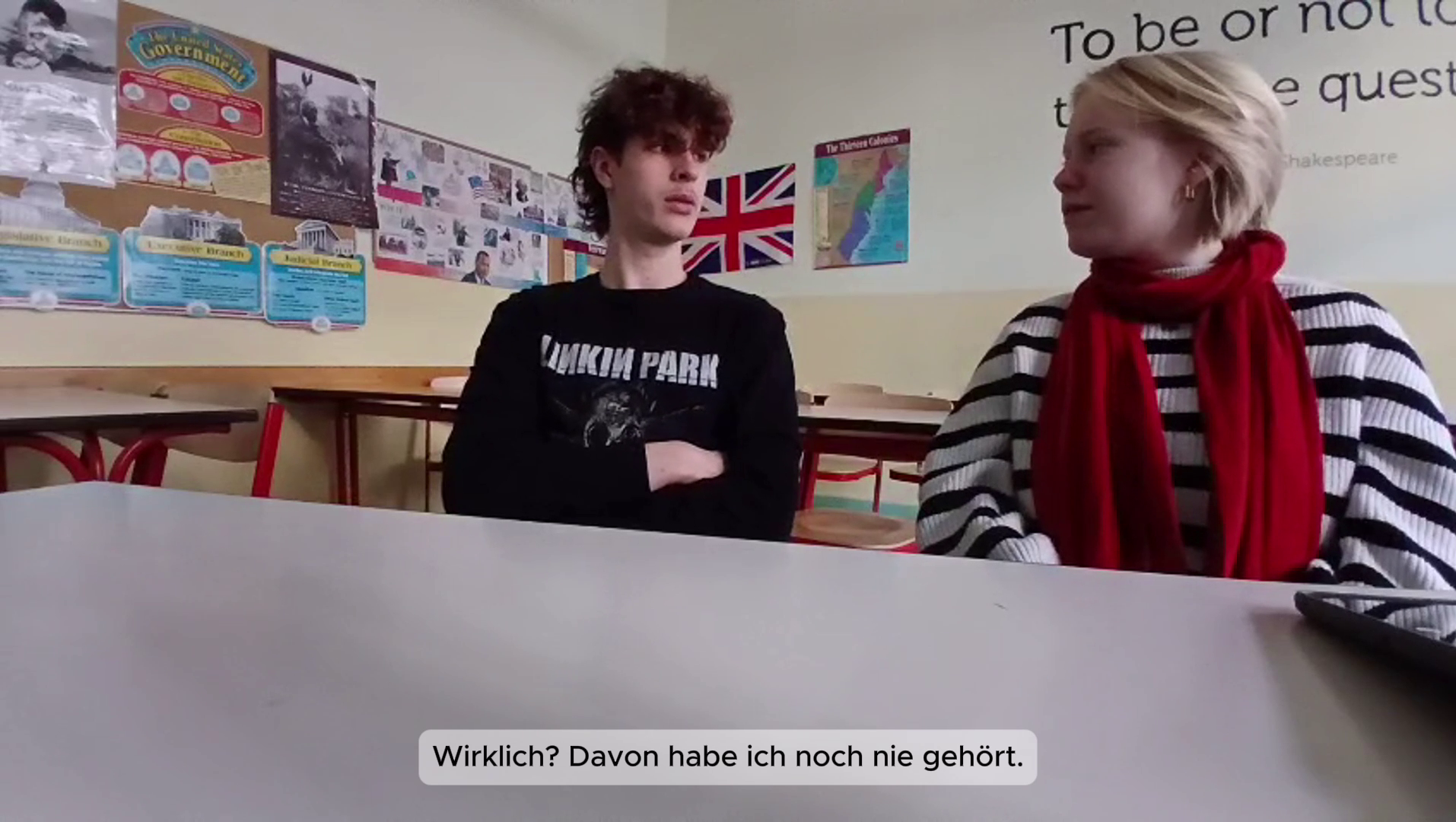 Jugendlich zu sein war noch nie einfach. Es ist die verwirrende Zeit zwischen Kindheit und Erwachsensein. In unserer komplexen, sich schnell verändernden und global vernetzten Welt ist es noch schwieriger, seinen Platz in der Gesellschaft zu finden – besonders angesichts der aktuellen Konflikte weltweit. Als deutsche Jugendliche wachsen wir im Vergleich zu vielen anderen jungen Menschen in Sicherheit, mit finanzieller Stabilität und guten Bildungschancen auf. Deshalb ist es wichtig, unsere Stimmen für diejenigen zu erheben, die nicht gehört werden. Aus diesem Grund widmen wir unser Video für den „History Award“ der Friedensbewegung „Schwerter zu Pflugscharen“.