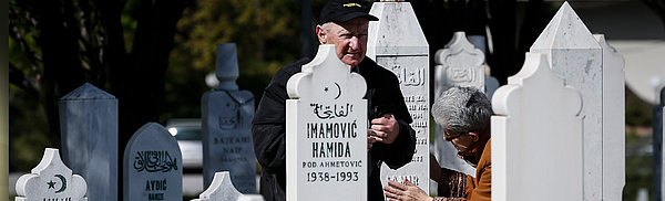 Aglaia Szyszkowitz auf dem Friedhof vor der Olympiahalle Juan Antonio Samaranch (ehemals Olympiahalle Zetra) in Sarajevo, wo tausende Opfer des Bosnienkrieges begraben sind. Szyszkowitz kam nach Sarajevo, um unter anderem Edin Numankadić, den Direktor des Olympischen Museums und Zeitzeuge des Bosnienkrieges, zu treffen. Numankadić berichtete der Schauspielerin vom Bombardement auf das Olympische Museum von Sarajevo, das der Direktor als gezielten Angriff auf das historische Erbe Sarajevos bezeichnete.